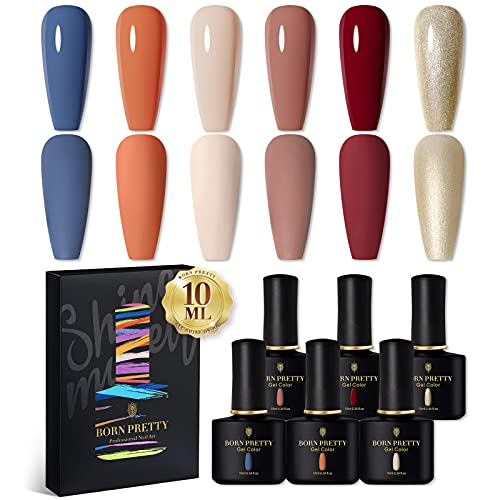 BORN PRETTY 10ML UV Nagellack Set Glitzer Braun Blau Gold, Shellac Set Weiß Nackt Gel Nagellack Schellack Nagellack UV…
