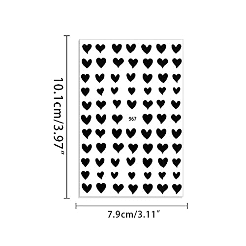 Love Heart Designs 3D-Nagelaufkleber, Valentinstag, Schwarz, Gold, Argentum, Rot, Roségold, Transfer-Aufkleber, Schieber, Geschenke, Herz-Nagelaufkleber für Nagelkunst