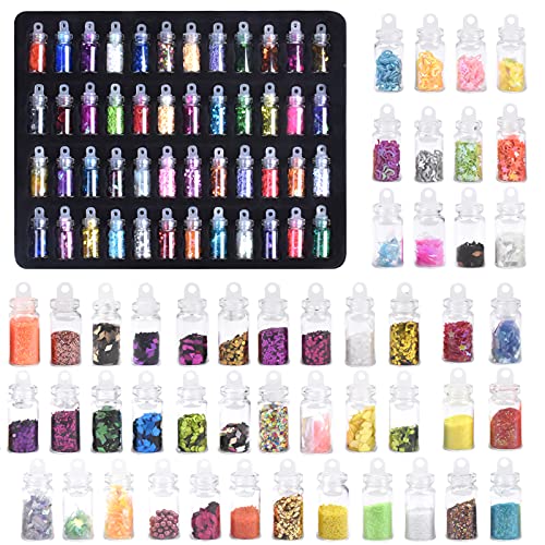 ✿Paket: Mit 48 Gläsern Glitzerdekorationen in verschiedenen Farben und Typen, einschließlich Glitzer-Pailletten, Glitzer-Kraft und Glitzer-Perlen, die Ihren Anforderungen entsprechen.