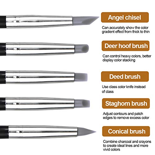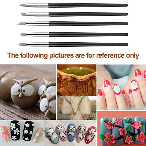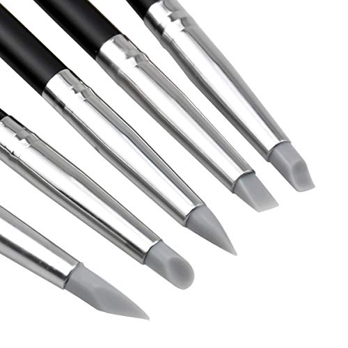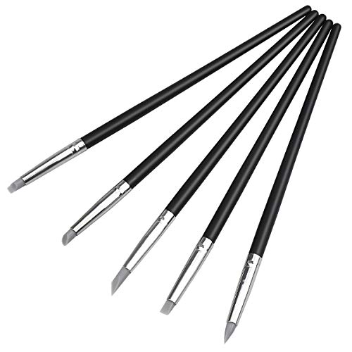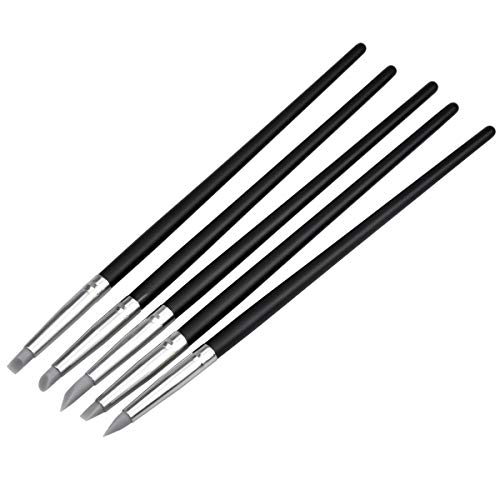 【5er-Gesindel】: Dieses Werkzeugset aus Tonformern enthält 5 Stufe Silikon-Modellierstift. Die Silikonspitzen sind in verschiedenen Gestalten erhältlich, einschließlich Tassenmeißel, Winkelmeißel, Flachmeißel, Kegelspitze und Tassenrunde.