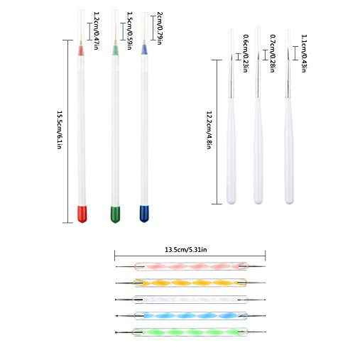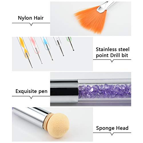 [Nagel PinselSet Enthalten] Das Set enthält 31 Teile: 15 * Bemalte Stifte, 5 * Bohrstift mit Spiralspitze, 6 * Geschnitzten Stift mit Aufreißlasche, 1 * Nail Art Rendering-Werkzeuge Doppelter Kopf Ombre Sponge Stick, 4 * Ersatzköpfe