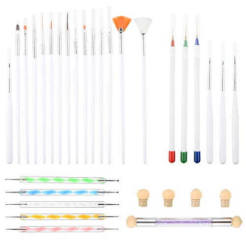 Der 31-teilige Stift besteht aufgebraucht Nylon. Die Borsten sind gleichmäßig und zaghaft, nicht leicht zu gabeln, langlebig und leicht zu reinigen. es kann auf die Nägel aufgetragen werden; Es kann vulgo statt dessen gerillte Blumen und kleine Nägel verwendet werden.