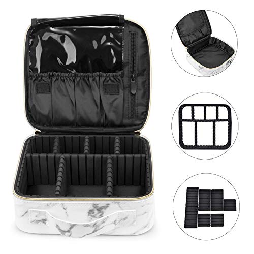Multifunktionsfach: Diese Tasche bietet üppig Platz für Make-up und Kosmetik. 4 x wasserdichte Make-up Pinseltaschen (ca. 7 Taxe Make-up Pinsel / Haarbürsten); 1 x Reißverschluss Sandwich (Make-up-Baumwolle und Handtuch); 6 x herausnehmbare EVA-Blende (freies Spiel, um das zu verändern, was Sie möchten)