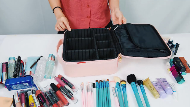Einzigartiges Design: Die verstellbare Abteil für ein ordentliches und ordentliches Make-up, einen Bürstenbeutel aus Kunststoff und einen abnehmbaren Acrylrahmen. Angemessene Größe, verschwenden Sie keinen Platz, Sie können Ihr Gepäck mitbringen, um Ihren Schminktisch zu bauen.