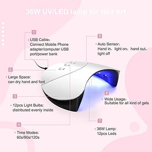 Gute Trocknungswirkung : Unsere Lampe ist 36W UV / LED Abschrift-Lichtquelle, 12-teilige Lampenperlen. Mit drei Timing-Einstellungen anstelle 60/90 /120s können Sie die Zeitdauer angemessen Ihrer eigenen Situation adjustieren.