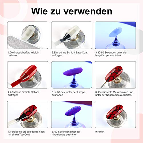 alkalische Lösung&Top Coat : Auf Grund der Tatsache einen Unterlack hält die Farbe besser auf den Fingernägeln und bildet eine Schutzschicht anstelle die Nägel. Der Überlack dient zum glänzendes Finish. Mit Matte Top Coat können Sie elegante Optik einsacken.
