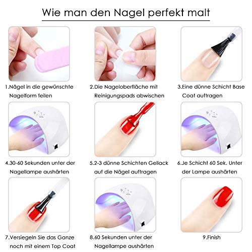 LANGLEBIG— Hohe Qualität und gute Haftung, mit unsere Base und Top Coat benutzen, kann es bis zu 2-3 Wochen dauern, mit Hochglanzabnutzung und ohne Abplatzer.