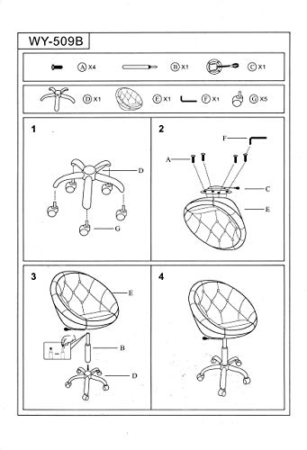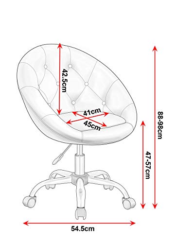 Sitzhöhe min-max: 47 – 57 cm, Gesamte Breite x Hölle: 68x60cm, Höhe der Rückenlehne : 42,5 cm, Fuß Ø : 54,5 cm, Gefestigt bis 130 KG