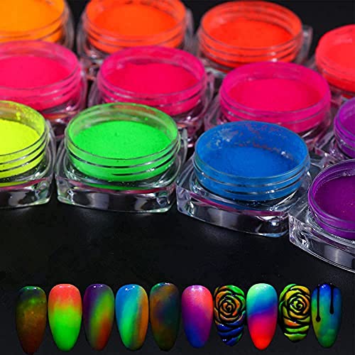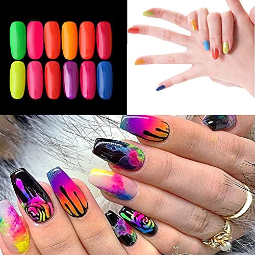 12 tolle Farbtöne: Es gibt insgesamt 12 verschiedene Farben, diese Farben haben reine und helle Farben, können für Farbverlaufsnägel verwendet werden, zugegeben nicht im Dunkeln leuchten.