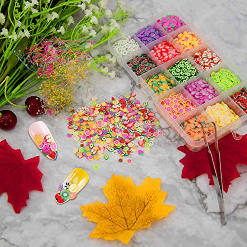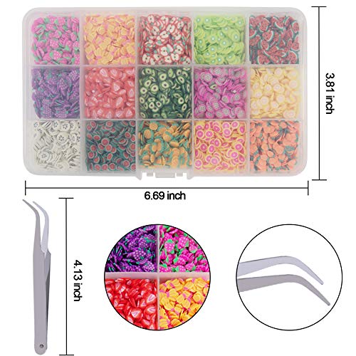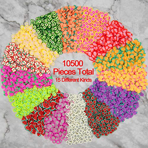 Duufin 10500 Stück Obst Scheibe Nail Nagel Obst Schleim Mini 3D Obstscheibe Nail Art Slice mit Pinzette Obst Polymer…