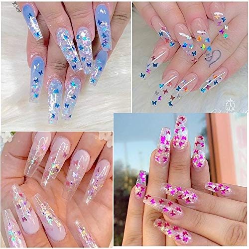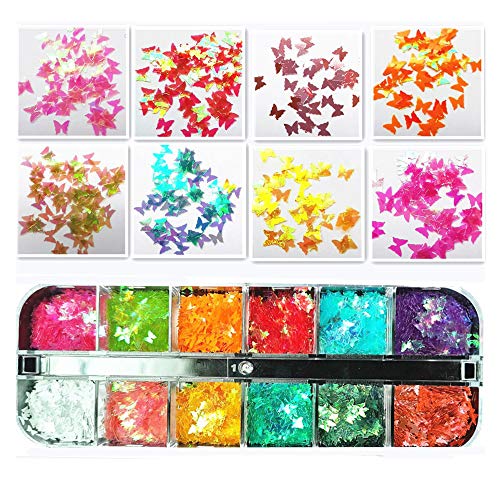Mehrfachverwendung – Dieses farbenfrohe Schmetterlings-Glitzer-Set eignet sich sehr gut für 3D-Nair-Kunst, flache Nagelkunst, Kunsthandwerk, Sammelalben, Geschenkverpackungen, Ornamente, Karten, Schilder, Gesicht, Körper, Nägel, Handyhülle usw.