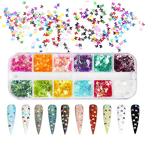 Ebanku 3D Schmetterlingsnagel glitzert Pailletten: