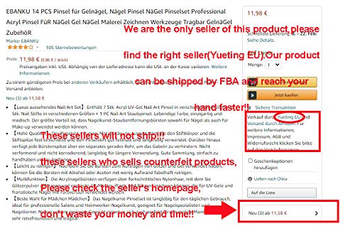 【Leicht zu reinigen】 Da ja Sie die Bürsten zum Auftragen von Glitzer und Gel verwendet haben, können Sie die Borsten mit Zielwasser oder Aceton mit wenig Zoll fabelhaft reinigen.