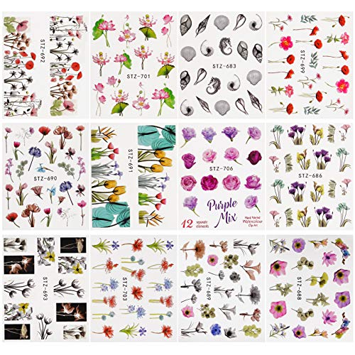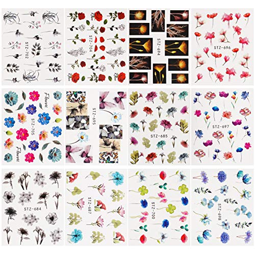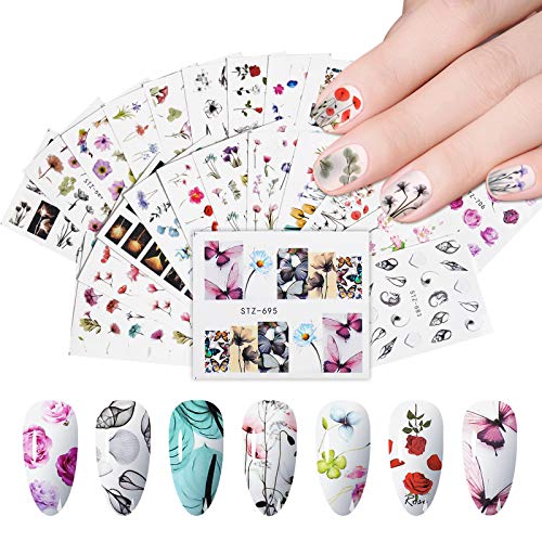 Verpackungsinhalt: 24 Blatt Blumenaufkleber für Nägel