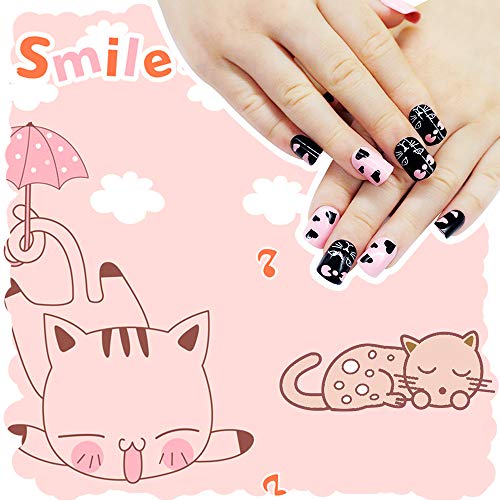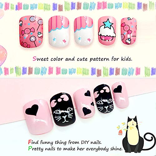 2 x niedliche falsche Nägel Full Cover Kids gefälschte Nägel Tipps Cartoon Nägel Presse künstliche Nagel Weihnachtsgeschenk für DIY Kids Little Girls.