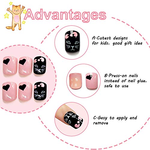🌼Jede Bestellung enthält 2 Schachteln mit Nagelabdeckungen. Jede Schachtel enthält 24 süße künstliche Nägel in verschiedenen Größen. EBANKU künstliche Presse auf Nägeln Designs für kleine Mädchen über 3 Jahre und Frauen mit kurzen und kleinen Händen. Vorkleben und einfach aufzutragen. Sie müssen keinen Gel- oder Nagellack auftragen und erhalten die wunderbaren Nägel.