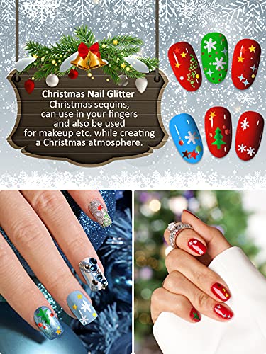 🎄 【Sicherheitsmaterial】 Qualitätssicherung und die weihnachtlichen Nagelpailletten jeglicher hochintensivem Pigment und holografischem Glanz, umweltfreundlich, ungiftig, geruchlos und umweltfreundlich. Sie können auf Nägeln oder überall ohne Scharf verwendet werden.