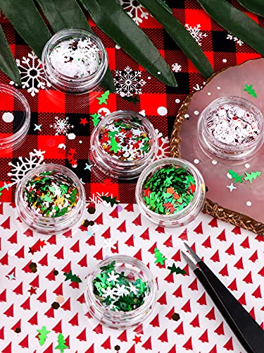 🎄【Paket enthalten】Sie erhalten 6 verschiedene Formen und Farben von Weihnachtspailletten, einschließlich Schneeflocken, Weihnachtsbäume, rund, Sterne usw. Jeder verschiedene Stil von Pailletten ist einzeln in einer gut verschlossenen Aufbewahrungsbox verpackt, um ein Überlaufen zu verhindern.