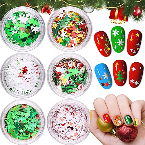 EBANKU 6 Boxen Christmas Pailletten Schneeflocken Glitzer Nail Art Decoration, Holographic Laser Christmas Nail Flakes…