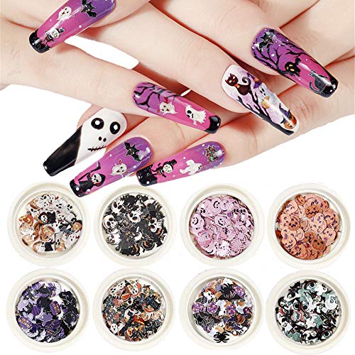 ❤VERSCHIEDENE STILE: Das Paket enthält 8 Schachteln Halloween Nail Art Sequins. Modische und niedliche Designs. Sie sind enorm schöne Nagelornamente, die zusammen mit Nagellack verwendet werden können, um den dekorativen Effekt zu erzielen.