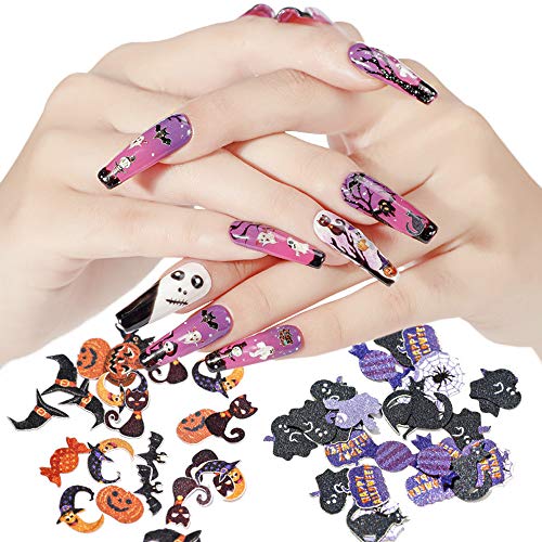 ❤HOHE QUALITÄT: Die Pailletten und Nageldekore von Halloween Bat Skull Spider Pumpkin die Gesamtheit umweltfreundlichen Materialien, die nicht auf Nägel limitiert sind, können Sie leistungsfähig verwenden.