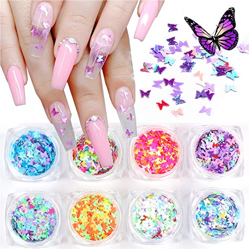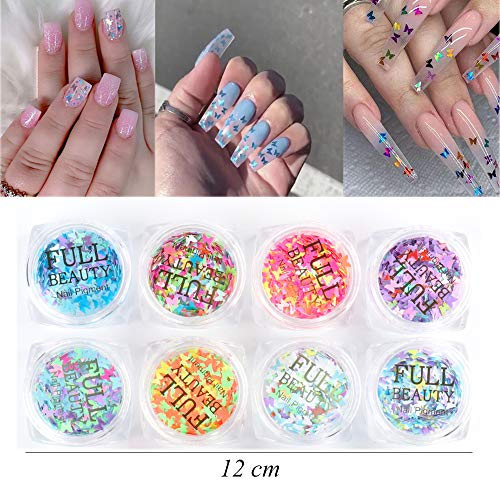 ✔BUTTERFLY NAIL ART SET – 8 Schachteln mit bunten Schmetterlingsnagel-Pailletten. Jede Schachtel ist mit einer guten Versiegelung eingepackt, um sie vor dem Auslaufen zu schützen. Es ist ein perfektes Geschenk.