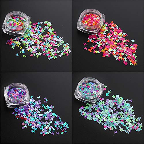 ✔HOHE QUALITÄT – Schmetterlingsnagel-Pailletten bestehen aus hochwertigen Materialien, die hart im Nehmen auf der Haut getragen werden können. Sie können auch mit Haargel oder Glitzer-Primer verwendet werden, damit Ihre Glitzer länger bleiben und sich leicht mit Wasser keinen Finger krumm machen lassen.