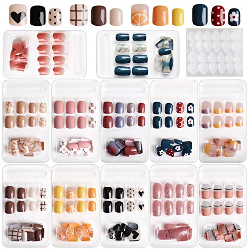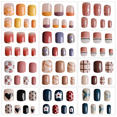 💖 Exquisiter Anzug: Falsche Nägel für Mädchen haben eine kurze Sargform, elegante tropfenförmige Nägel und Nägel im Ballerina-Stil, verschiedene Muster und Farben, kombiniert zu 12 exquisiten künstlichen Nägeln. Sie müssen sich keine Gedanken darüber machen, wie zusammenpasst Die charming Nägel können auch andere Stile selbst kombiniert werden.