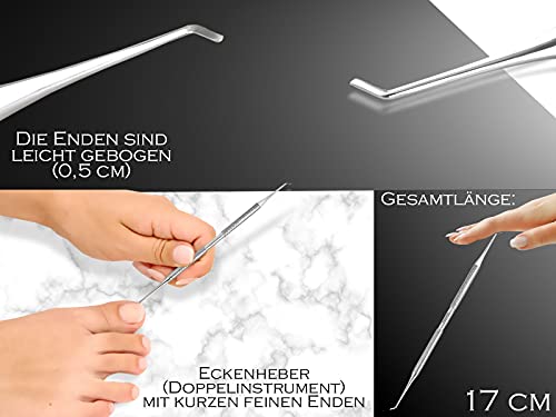 Eckenheber (Doppelinstrument) mittels großen feinen Nicht fortsetzen Professionelle Positionierung Sondern Andernfalls- u. a. Rechtshänder Gesamtlänge: 17,0 cm Länge der Nicht fortsetzen: 0,5 cm Material: rostfreier Edelstahl Der Eckenheber eignet sich phantastisch Sondern Nagelecken An der Grifffläche befindet sich eine Riffelung die ein Abrutschen verhindert u. a. folglich ein sicheres Bestellen ermöglicht Leicht zu Reinigen 8-Kant Knauf