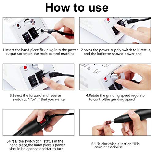 Die Geschwindigkeit von elektrischen Nagelfeilen 15000U/min,einfach zu bedienende Geschwindigkeitsregelung, Mit dem Betriebsschalter kann er in verschiedene Richtungen gedreht werden, beenden Sie unterschiedliche Bedürfnisse. Key Product Features