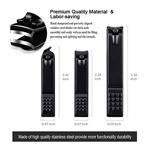 【Hochwertige professionelle Nagelknipser】 — 3 PCS Nagelknipser-Set enthält Fingernagelknipser, Zehennagelknipser und einzigartigen schrägen Nagelknipser. Mit robusten 430 Edelstahl-Präzisionsklingen und rutschfestem Hebel, krass, langlebig und rostfrei, erzielen Sie einen präzisen und sauberen Schnitt. Schwarze Nagelschneider sind stilvoll und professionell, ideale Werkzeuge für Maniküre, Pediküre.