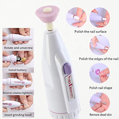 【Leichtes und tragbares 5-in-1-Nagelbohrkit 】– Dies ist ein One-Speed-Leichtbohrer mit 5 Bohrertypen. Der Bohrer ist austauschbar. Entwickelt für den vielfältigen Gebrauch – Kallus entfernen, Nägel reinigen, schleifen und polieren. Angetrieben von 2 AA-Batterien, müssen Sie nicht nach einer Stromversorgung an den Außenseiten suchen (erfordert 2 AA-Batterien, die nicht im Lieferumfang enthalten sind).