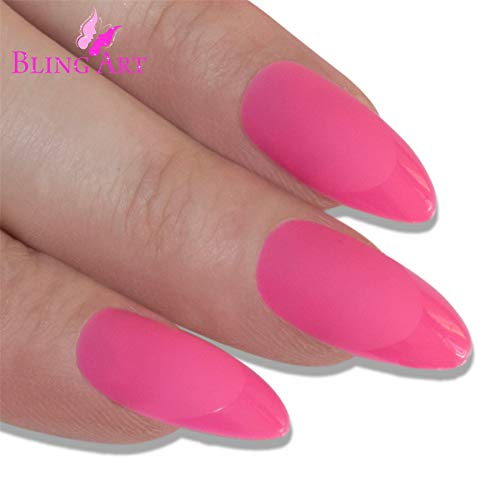 Matte Pink – Mandel Stiletto Long – Jedes Set enthält 24 Nägel, Nagelfeile, Nagelhautstab und einen 2 Gramm Klebestift.
