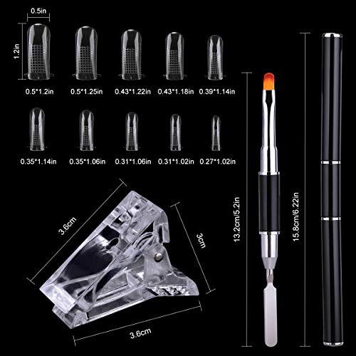 【Nail Extension Set】 Das Nagelspitzenform-Set beinhaltet 100 Bruchstück künstliche Nagelspitzen, 10 Bruchstück Nagelspitzen-Clips, 1 Bruchstück Poly-Verlängerungsgel-Pinsel und Picker, 1 Bruchstück Nagelbürste, 1 Bruchstück Nagelknipser, 1 Bruchstück gebogene Pinzette, 1 Bruchstück Strass Nageldekoration und 2 Bruchstück Nagelfeile. Das komplette Set von künstlichen Nagelformen ist eine perfekte Wahl für Ihre Nagelmode.