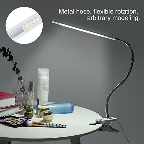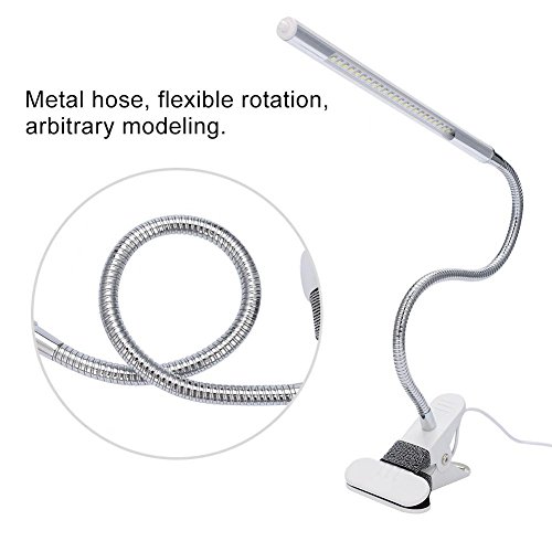 Die Lampe ist sehr leicht und kann um 360 Tönung gedreht werden, so dass Sie sie an Ihre bequeme Position auf dieselbe Ebene stellen können. Mit einem Clip kann die Lampe an der Tischkante, dem Nachttisch und anderen Orten für eine bequemere Nutzung geklemmt werden. Mit hellen LEDs kann die Lampe auch als Tattoo-Licht für den Salon verwendet werden. USB-Schnittstellen-Netzteil macht es in der Lage, mit Computer, Powerbank und vielen anderen Geräten zu verbinden.