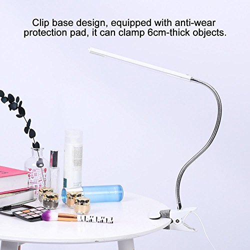 ♥ Verstellbares Design: Das Rohr kann frei gebogen werden, Sie können die Höhe und Richtung der Lampe adaptiv anpassen. Der Haltearm kann in verschiedenen Winkeln eingestellt werden, um Ihre unterschiedlichen Bedürfnisse zu erledigen. Clip-Basis-Design, ausgestattet mit verschleißfestem Schutzpolster, kann 6 cm dicke Objekte am Schreibtisch klemmen
