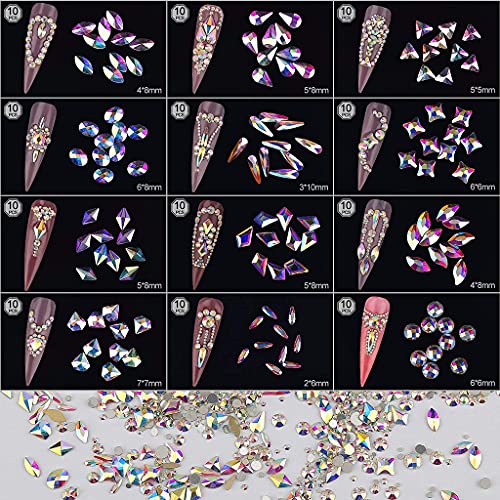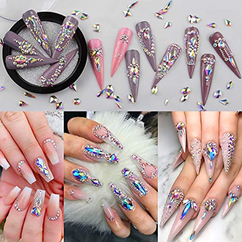 Flache Rückseite, glänzend, Nagelschmuck, für Nagelkunst, Basteln, Telefon, Kleidung, Schuhe, Schmuckbeutel, verschiedene Ausrichten, Glaskristalle, AB-Nagelschmuck, 3D-Anhänger