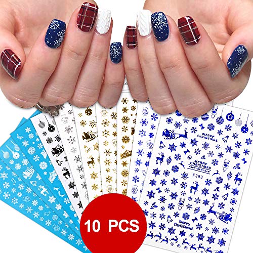 FLOFIA 10 Blatt Weihnachten Nagelsticker Selbstklebend Nagelaufkleber