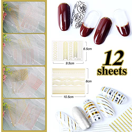 🌟Lieferumfang: 12 Blätter Nail Art Streifen Nageldeko