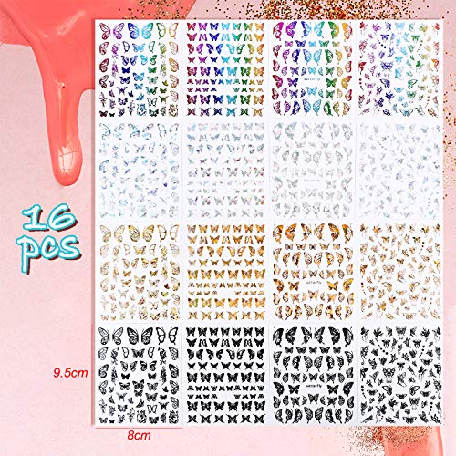 Lieferumfang: 16 Blätter 3D Schmetterling Selbstklebende Nagelsticker, in der Regel 4 Stile