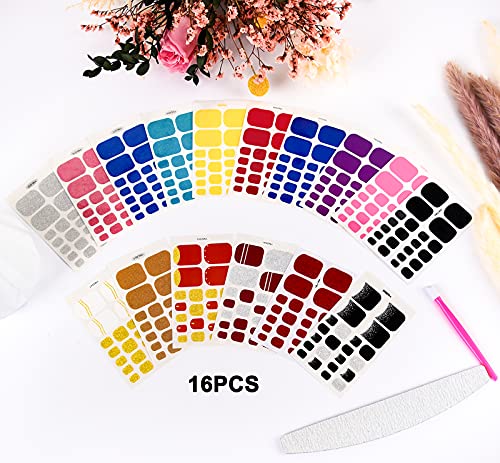🙌Das Kit Enthält💎Dieses Nagellack Folie Set enthält 16 Stile von Nagelaufkleber, Kommt mit 1 Fragment Nagelfeilen und Einem Gummi Nagel Nagelhautschieber in dieser Packung. Alle Blatt Nagellackaufkleber enthält 22 Stücke, insgesamt 16 Blätter, 352 Stücke. Jedes Nagelkunst Sticker wird separat eingepackt geliefert und klebt nicht aneinander.