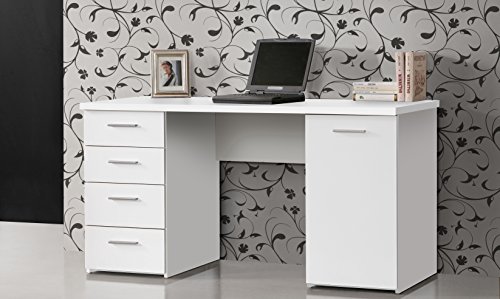 FORTE Net106 Schreibtisch mit 4 Schubladen und 1 Tür, Holzwerkstoff, Weiß matt, 145 x 60 x 76.3 cm