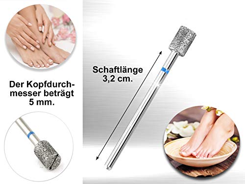 AUSFÜHRUNG ✯ Schleifer mit hochwertiger Diamantbeschichtung. Mittlere Körnung. Zylinder Form. Statt Umackern an den Nägeln und Hornhaut. Statt Nass- und Trockentechnik.