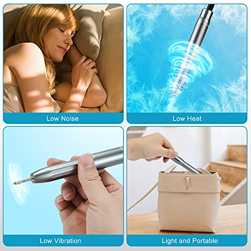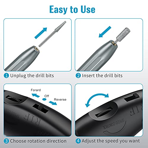 【Variable Geschwindigkeit und Rückwärtsdrehung】Der solide elektrische Nagelbohrer hat die Leistung und das Drehmoment, um das Abschleifen mit professionellen Ergebnissen fertigzustellen. 0-20,000RPM Gerät mit einer genauen Geschwindigkeitsregelungstaste, was diese elektrische Nagelfeile leichter und sicherer für das Abschleifen Ihrer Nägel macht, ohne die natürlichen Nägel zu beschädigen. N/F Der Steuerschalter für Vorwärts- und Rückwärtsdrehung ist narrisch für Links- und Rechtsbedienung.