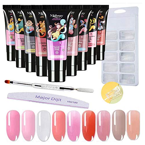 🌸🌸 [Schnelltrocknendes UV-Gel-Builder-Set] Dieses Kit enthält 9 Building Nail Gel (15 ml), 100 * Nagelformen, 1 * Double-End-Bürstenschieber, 1 * Nagelfeile und 1 * transparenten Clip. Es kann Ihre Grundbedürfnisse nach Nail Art Design absperren und wird verwendet, um Ihre eigenen Verlängerungsnägel schlank und glänzend zu machen.