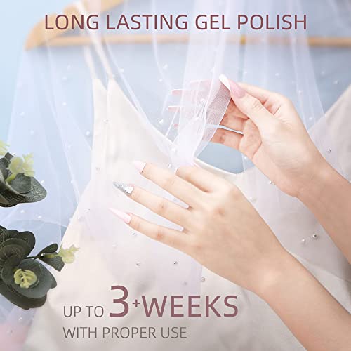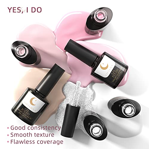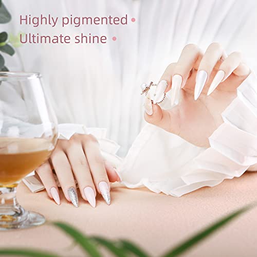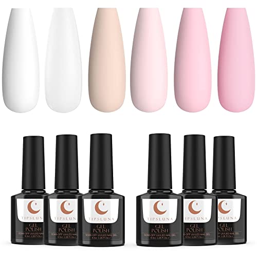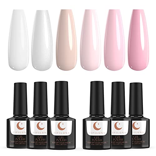 Gel Nagellack French Nägel Design, UV Nagellack von TipsLuna, 6stk Nagellack Set, Weiß und Rosa Gellack, Glitzer Gel…
