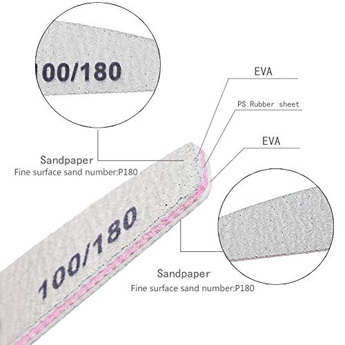 Hochwertige Materialien: Doppelseitige Maniküre Nagelfeile besteht aus EVA-Korund, Robust. Eine Seite ist 100er Körnung, die zum Nagelformen und Realisieren Adäquat ist, die andere Seite ist 180er Körnung, die zum Abschleifen des Gels verwendet wird. Design des waschbaren Materials, einfach abspülen.