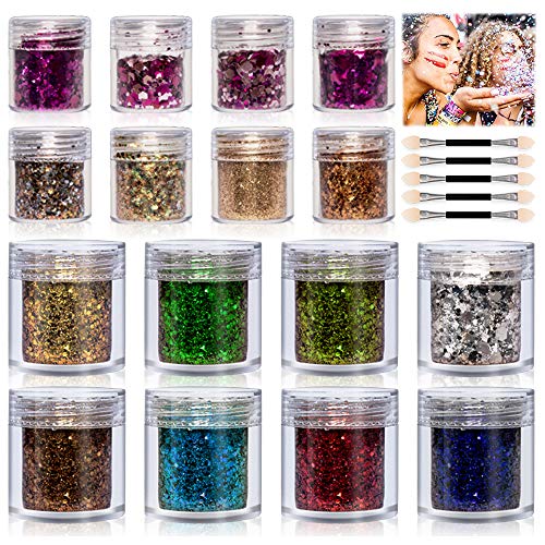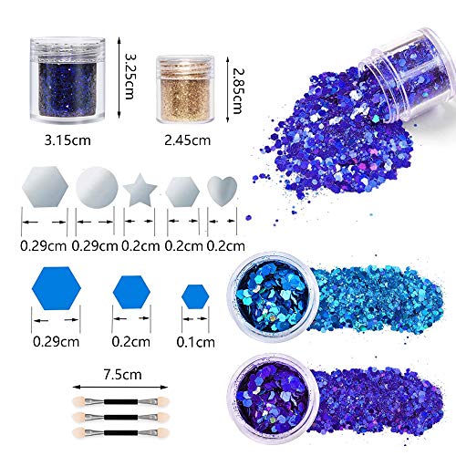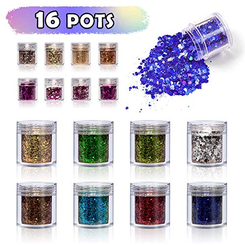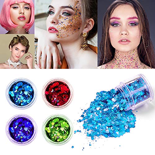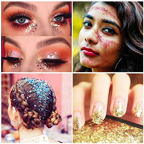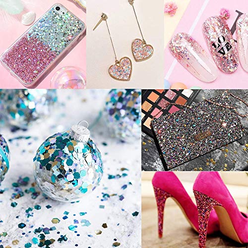 MEHRERE VERWENDUNGEN – Sie können die chunky Glitter Flocken verwenden, um Ihr Zuhause, Handy-Gehäuse, Brille, Karte, Body Art, Gesicht, Augen Make-up und vulgo Spaß für Schleim etc. zu dekorieren.