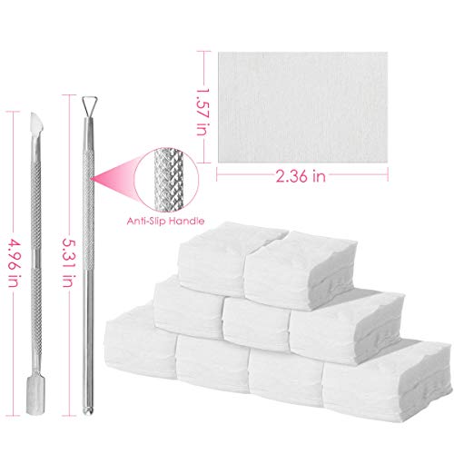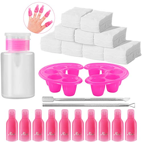Was Sie erhalten: 600 Nagellackentferner, Baumwoll-Wraps + 10 Nagelspitzen-Clips + 1 Nagelhautschieber + 1 Edelstahlschieber + 1 Spenderflasche + 2 Nägel-Art-Tip-Schalen