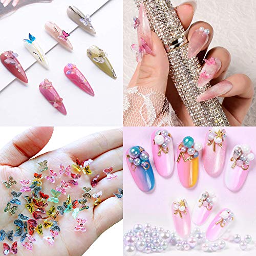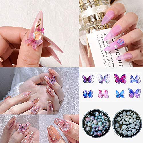 Paket enthalten: 100PCS 3D Nagelharz Schmetterlingszauber, 2 BOX Imitationsperlen